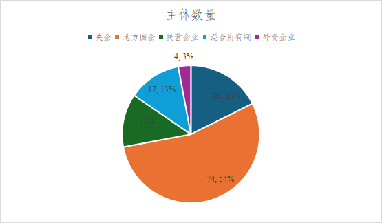 在上述已發(fā)行的REITs項目中,原始權(quán)益人以央國企為主,合計占比達到72%,其中:地方國企占比最高,達到54%,主導了產(chǎn)業(yè)園區(qū)、收費公路等傳統(tǒng)領(lǐng)域項目,并廣泛參與倉儲物流、新能源、水利、消費基礎(chǔ)設施等多個行業(yè);央企占比18%,主要為招商局、國家電投、華潤、中國電建、中國交建、中核集團等企業(yè),涵蓋收費公路、產(chǎn)業(yè)園、保租房、新能源等領(lǐng)域。