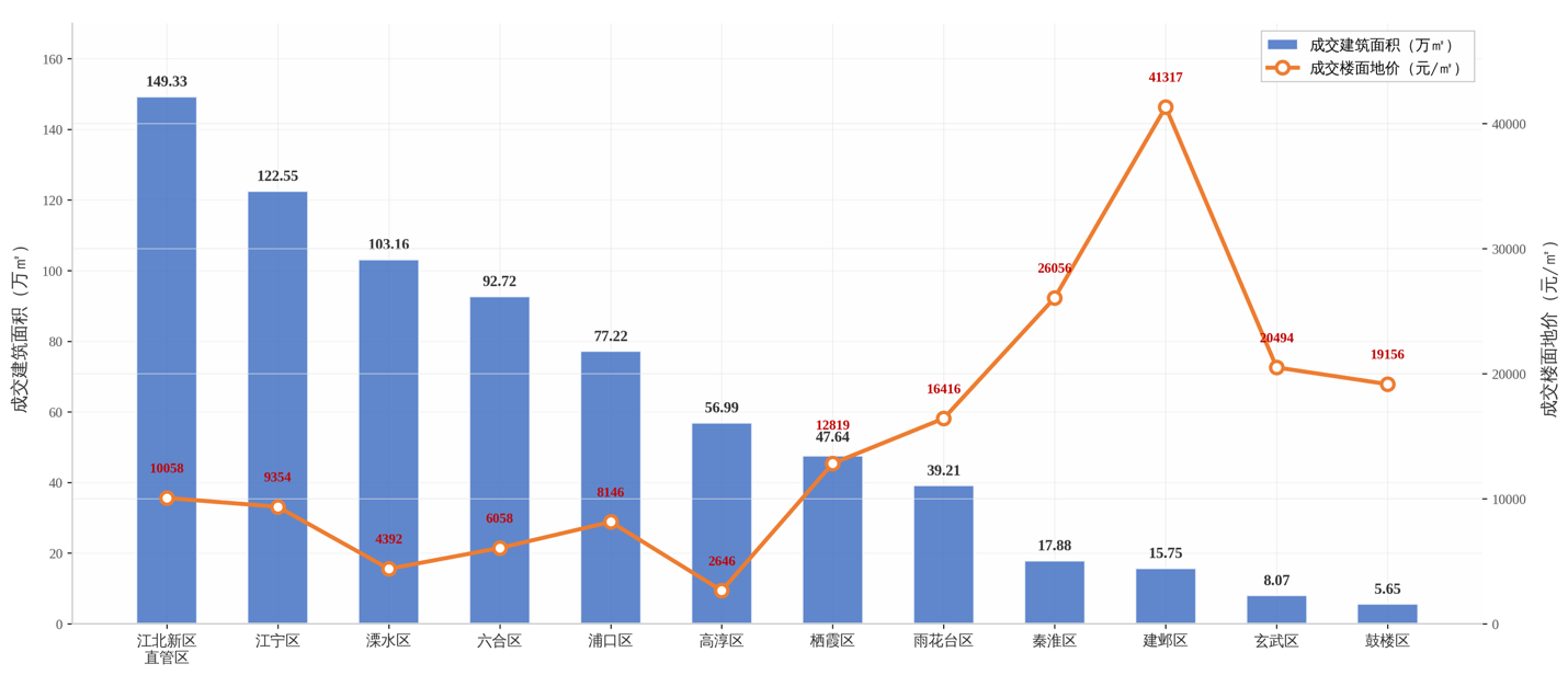 圖2:2025年南京各區(qū)域涉宅用地成交量?jī)r(jià)(圖引自房見公眾號(hào))